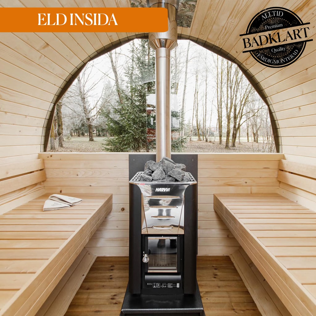 Upplev en sann nordisk tradition med bastu Eld. Med sin vedeldade design ger den en autentisk och avkopplande bastuupplevelse i din trädgård eller på din terrass. Eld är inte bara en bastutunna, det är en plats där du kan återuppliva din kropp och själ med varje flammande stund.